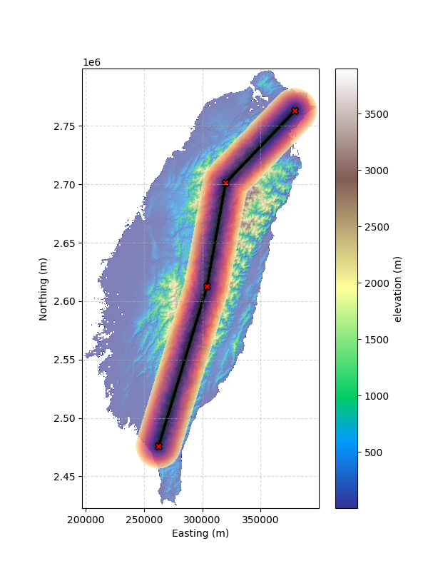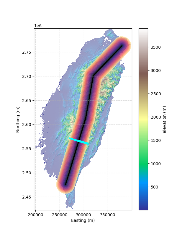 - We do a basic “rectilinear” large swath over Taiwan to introduce the basics about the transverse and longitudinal swath