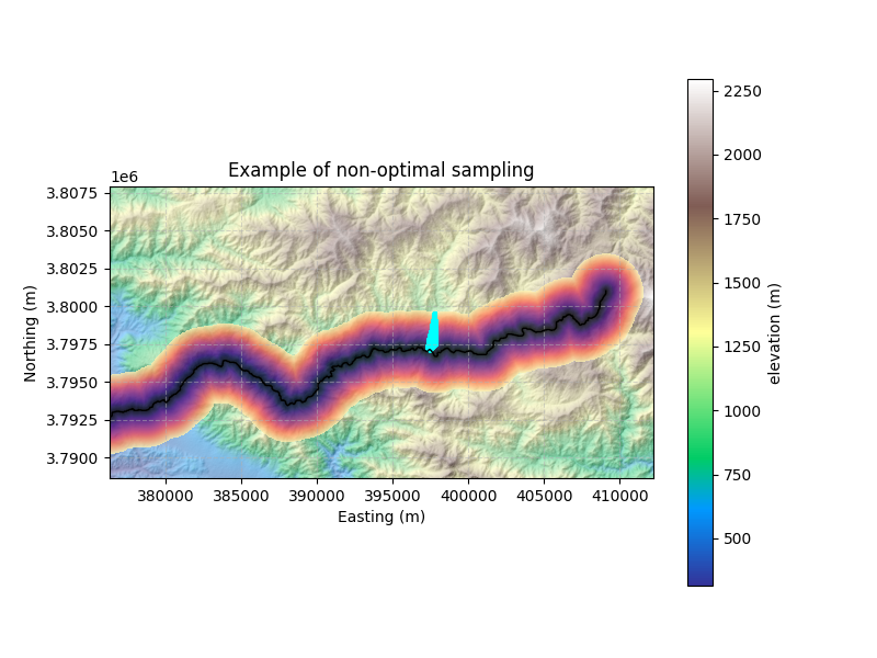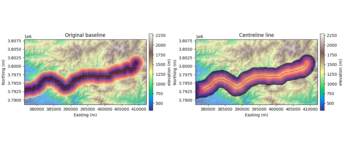 pytopotoolboxto proceed to an effortless swath along the river - We show some method to deal with baseline simplification, to make cleaner swath if they are too meandering